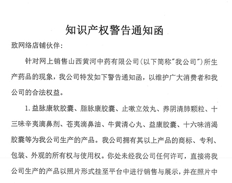 山西黃河中藥有限公司《知識(shí)產(chǎn)權(quán)警告通